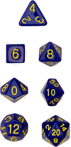 Role 4 Initiative Set of 7 Large High-Polyhedral Dice: Opaque Dark Blue with Gold Numbers