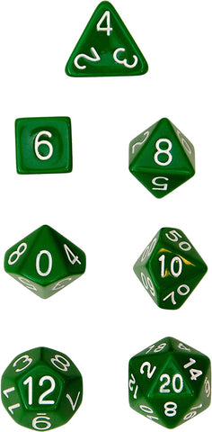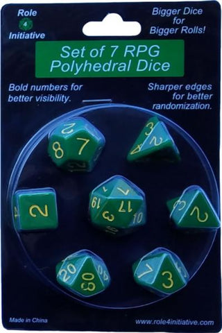 Role 4 Initiative Set of 7 Large High-Visibility Polyhedral Dice: Opaque Dark Green with White Numbers