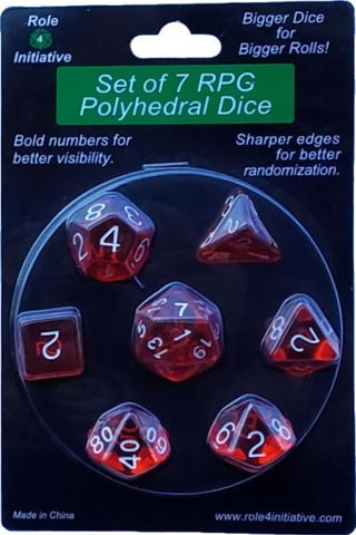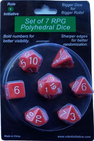 Role 4 Initiative Polyhedral 7 Dice Set: Opaque Red with White Numbers