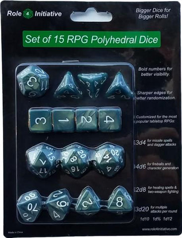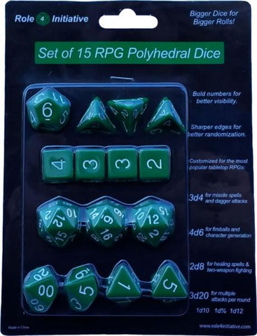 Role 4 Initiative: Polyhedral 15 Dice Set: Opaque Dark Green with White Numbers