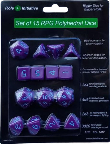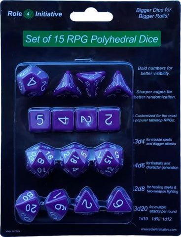 Role 4 Initiative: Polyhedral 15 Dice Set: Opaque Dark Purple with White Numbers