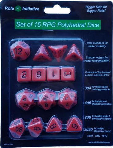 Role 4 Initiative: Polyhedral 15 Dice Set: Opaque Red with Black Numbers