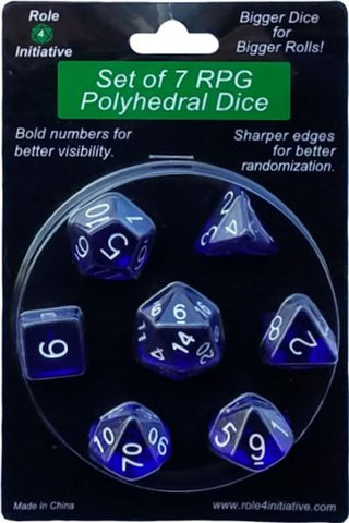 Role 4 Initiative Polyhedral 7 Dice Set: Translucent Dark Blue with White Numbers
